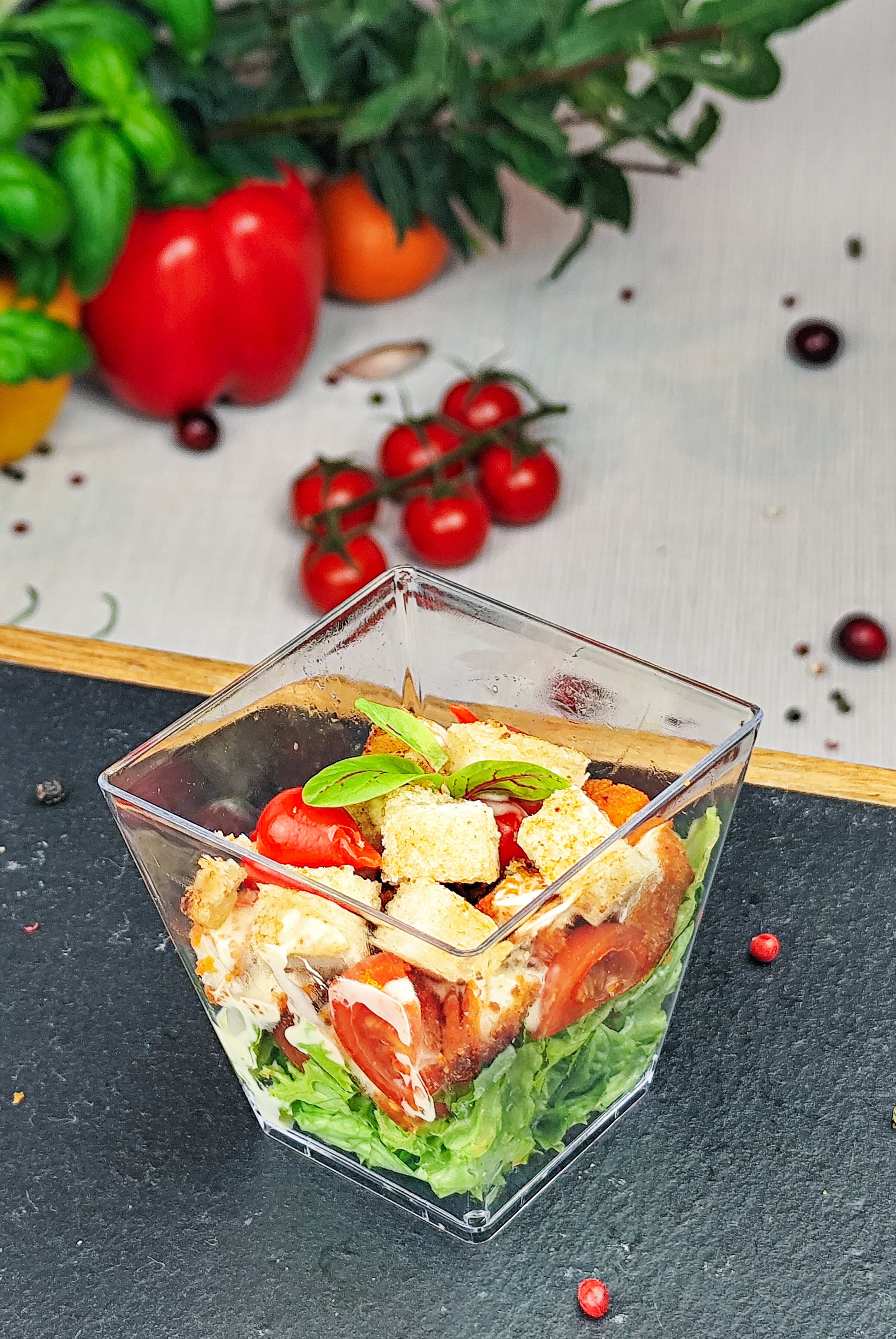 Gaivios salotos, žalumynai, svogūnas, vyšniniai pomidoriukai, alyvuogės, feta sūris, riešutai, salotų užpilas